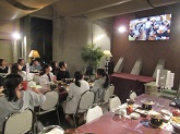 昼食は、京都駅近くのホテルの大広に集まりとりました。牛丼弁当(サラダ・香の物・デザート付き)を食べて一休み。そして、東京駅や清瀬駅では全員が集まれないので、少し早いのですがここで解散式を行いました。