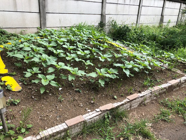 ヒグラシが鳴き、ひまわりも満開に近づきました