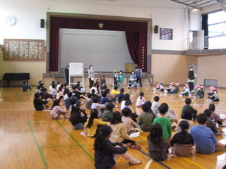 9日(木曜日)は、1、3、5年生の集会でした。今回も、影に映った先生たちが誰かをあてるクイズでした。今回が、今年度最後の集会です。集会委員会の皆さんで、体育館に入ってくる皆さんを出迎えてくれました。問題は3問でしたが、進行役、三択の画用紙をあげる役、先生にインタビューする役等、ずっと前から準備を進めてくれていました。楽しい集会の時間を過ごすことができました。集会委員会の皆さん、ありがとうございました。