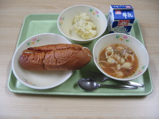 19日(火曜日)から1年生の給食が始まりました。小学校に入って最初の献立は、セサミトースト、ポークビーンズ、海藻サラダ、牛乳です。給食当番も自分たちで行っていきます。一つ一つが勉強です。コロナ禍なので、黙食です。片付けまで、みんなで約束を守って、給食の時間を過ごすことができました。